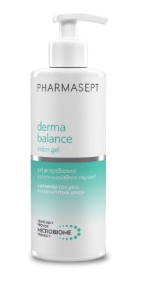 To Derma Balance Intim Gel της Pharmasept έχει pH 4.8. Χαμηλό, όξινο pH 4.8, που βοηθά στη διατήρηση της φυσικής ισορροπίας της περιοχής. Αυτό είναι ευθυγραμμισμένο με τα οφέλη των ήπιων καθαριστικών που ενισχύουν τη χλωρίδα και αποτρέπουν τη διαταραχή της. Απαλλαγμένο από ερεθιστικά συστατικά — χωρίς θειικά άλατα, σιλικόνες, ορυκτέλαιο, isothiazolinones ή phenoxyethanol, με άρωμα χωρίς αλλεργιογόνους παράγοντες.